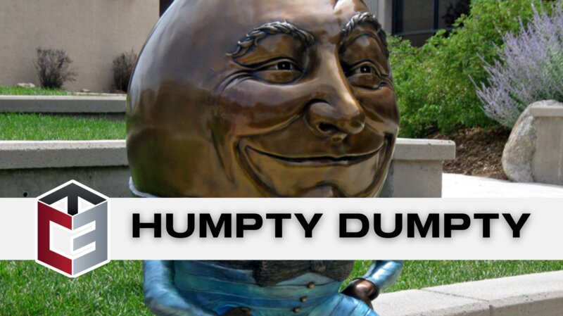 The first of the Humpty Dumpty Brothers arrived in 2002, and was given the name Bronze H.D. He rests outside of the Pikes Peak Center on Cascade Avenue, perched on a wall that children of all ages can easily approach. Created by award-winning Minneapolis artist Kimber Fiebiger, he sports a metallic green shirt, blue metallic striped pants, a dapper bow tie, stylish belt, and black loafers adorned with buckles. Originally part of the Arts on the Streets program, H.D. initially positioned on a rock at the Bijou and Tejon streets intersection. Community Ventures purchased him in 2004 and generously donated him to the City of Colorado Springs.