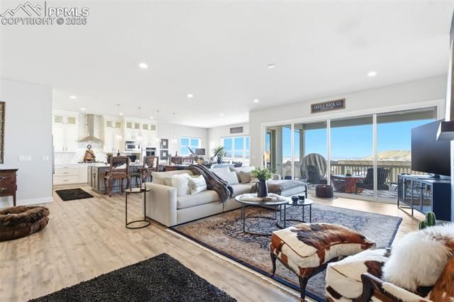 Welcome to effortless main-level living in Montaine’s sought-after Regency Collection, Castle Rock’s premier 55+ luxury community. Set in a friendly cul-de-sac where neighbors connect through holiday gatherings and everyday support, this home offers the peace of mind that comes from living among people who truly care. The open-concept floor plan is filled with natural light and features high ceilings, wide plank flooring, and a stunning great room with front range views, gas fireplace and large nesting sliding glass doors, creating a seamless indoor-outdoor flow perfect for entertaining. Electronic window coverings throughout the home add modern convenience and a polished finish. The gourmet kitchen is the heart of the home, showcasing an oversized island, custom cabinetry, quartz and granite countertops, double ovens, walk-in pantry, and generous prep space—ideal for both everyday living and hosting. The primary suite is a private retreat, complete with its own gas fireplace, radiant heated floors in the spa-inspired five-piece bath, and a spacious walk-in closet. A secondary bedroom with ensuite bath and a dedicated home office provide flexibility for guests, hobbies, or work-from-home needs. Convenient main-level laundry enhances ease of living. Step outside to the covered composite deck and enjoy open views and peaceful surroundings. The south-facing driveway naturally melts snow, a thoughtful Colorado convenience. Additional highlights include owned solar panels, central A/C, an oversized 3-car garage with EV hookup, and a level, professionally landscaped lot. The walk-out basement is unfinished and ready for future expansion. Montaine offers a true resort lifestyle with pickleball, tennis, bocce, lap and lounge pool, spa, clubhouse, fitness center, and over 13 miles of trails across 548 acres of open space. Snow removal and trash are included. This is downsizing done right—luxury, comfort, and community in one exceptional home.